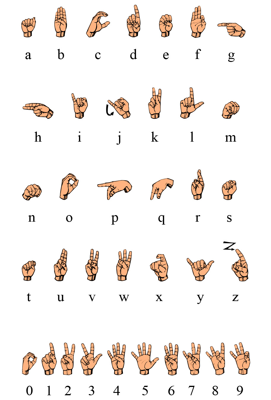Amerikanische Fingeralphabet: Von Ds13 in der Wikipedia auf Englisch – Übertragen aus en.wikipedia nach Commons., Gemeinfrei, https://commons.wikimedia.org/w/index.php?curid=79729279